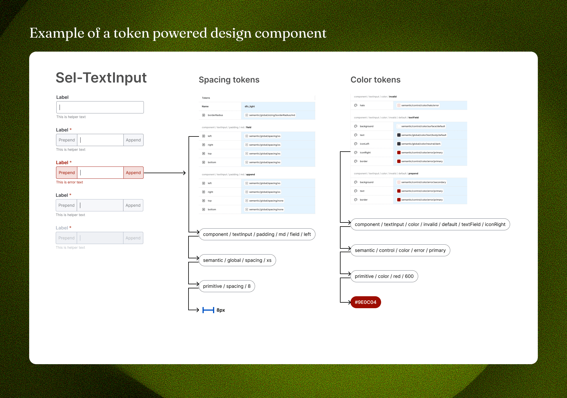 To resolve the fragmentation, we built a new design system ("Socket UI") that established a tight coupling between design patterns in Figma and code using Web Components. This ensured that the system was framework-agnostic and could be absorbed into any tech stack across the organization. I expanded the system to include 44 robust components and supported 3 distinct brand themes using a sophisticated 3-layer token system.