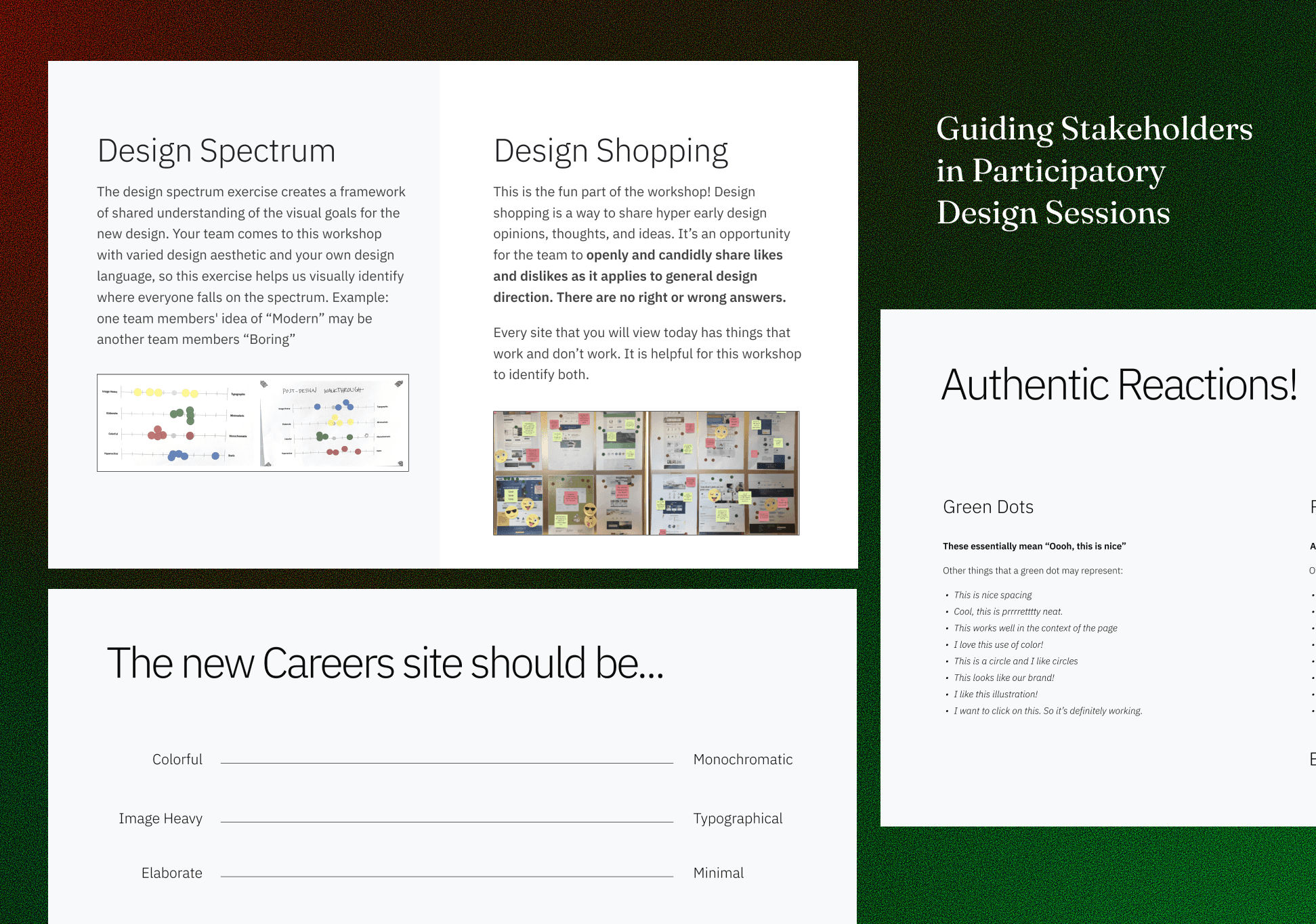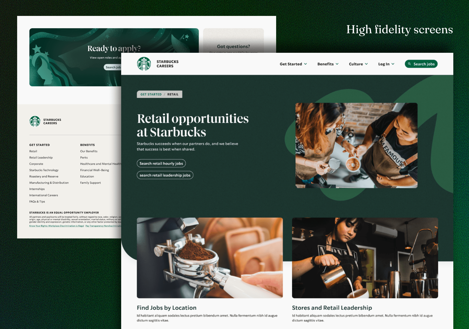 The project began with competitive research across other food and beverage brands, paired with content and design strategy workshops with key Starbucks stakeholders. The team also interviewed recently hired employees across both technology and coffee-shop roles to understand qualitative issues, from navigation problems to tone and clarity gaps in the careers experience.